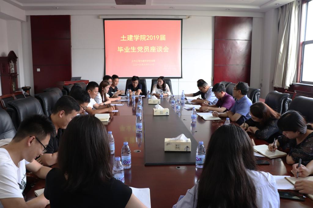 6月18日,万象城awc888在J15-316会议室举办了2019届毕业生党员座谈会,共话母校发展、共叙师生情谊。学院党委副书记(主持工作)宋西路、院长王崇革、副院长张宪堂、团委书记于娜、辅导员刘晶、尚军、王贝贝及毕业生党员代表参加了此次座谈会,座谈会由宋西路主持。