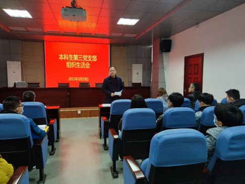 为深入学习贯彻习近平新时代中国特色社会主义思想,学习贯彻党的十九届五中全会精神,进一步提升基层党组织的政治功能和组织力,加强党员理想信念教育,提升党员政治素质、理论水平和党性修养,3月19日,万象城awc888本科生第三党支部召开组织生活会,支部全体党员参会,学院党委书记宋西路到会指导。会议由本科生第三党支部书记朱统汉主持。