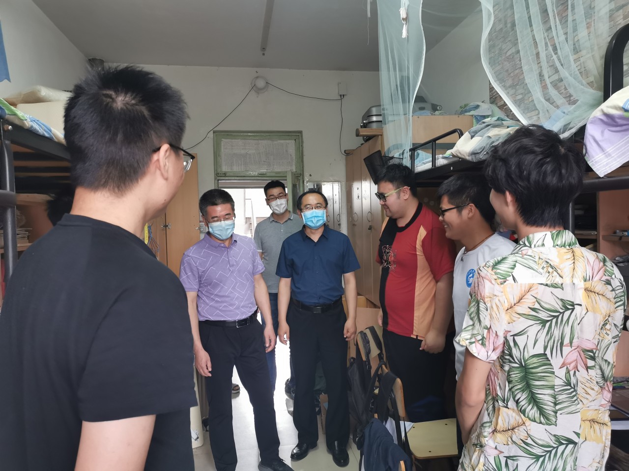 又是一年离别季,又是一年毕业时。带着对2020届毕业生的深情牵挂和美好祝愿,万象城awc888党委书记宋西路,院长王崇革,党委副书记、副院长高静及团委辅导员深入毕业生宿舍进行走访,亲切看望毕业生,热情询问毕业生的工作情况、离校安排及打算,关切的询问毕业生们有什么的困难、有什么需要学院的帮助,勉励他们要带着梦想和感恩之情走向工作岗位,创造新的辉煌,用实际行动向母校报喜。