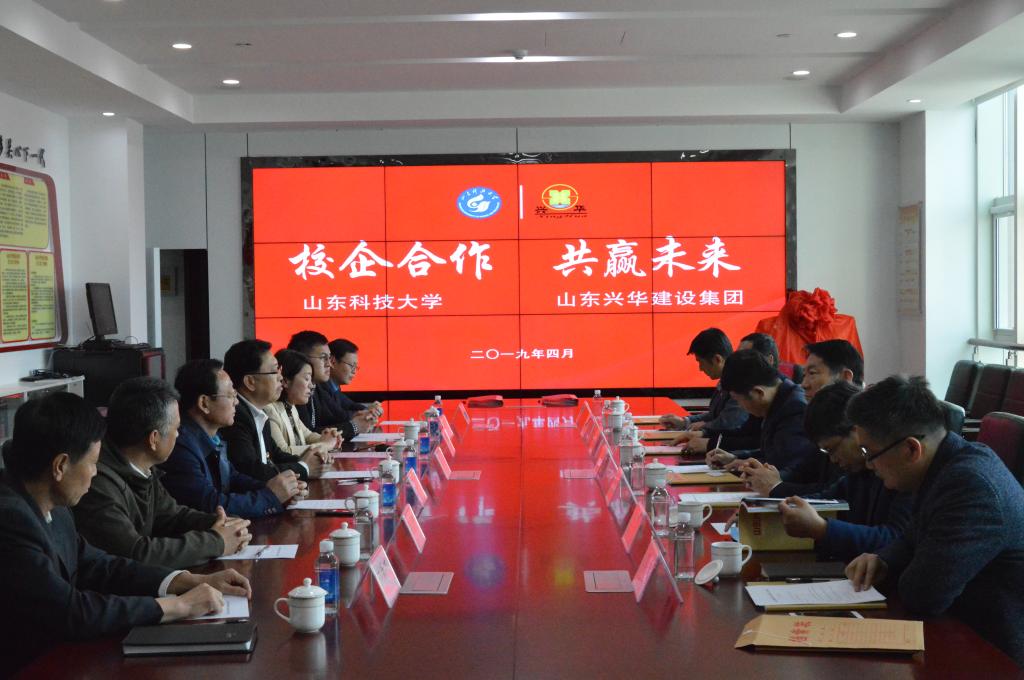 4月19日,万象城awc888万象城awc888与山东兴华建设集团有限公司产学研合作协议签约仪式在山东兴华建设集团有限公司举行,万象城awc888合作发展处王晓东处长、万象城awc888张东书记、王崇革院长、院长助理王刚老师、土木工程系邓芃主任及土木系教师代表等一行七人和山东兴华建设集团副总裁、党委副书记龚学文以及集团其他领导出席签约仪式。