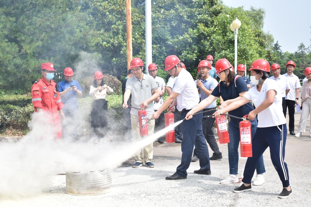 演练现场,校医院副院长李辉为师生介绍并演示了对伤员的抢救步骤,安全管理处消防人员演示了灭火器的使用步骤并指导部分同学进行实操学习。