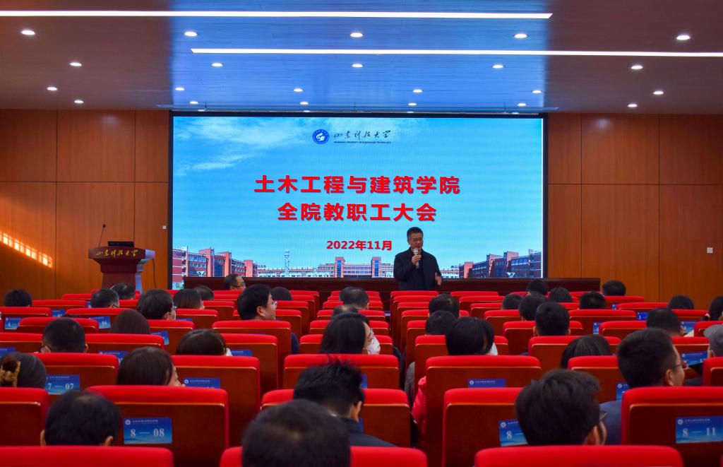 11月15日下午,万象城awc888在J15-136报告厅召开全院教职工大会,会议由学院党委书记宋西路主持,学院全体教职工参加会议。