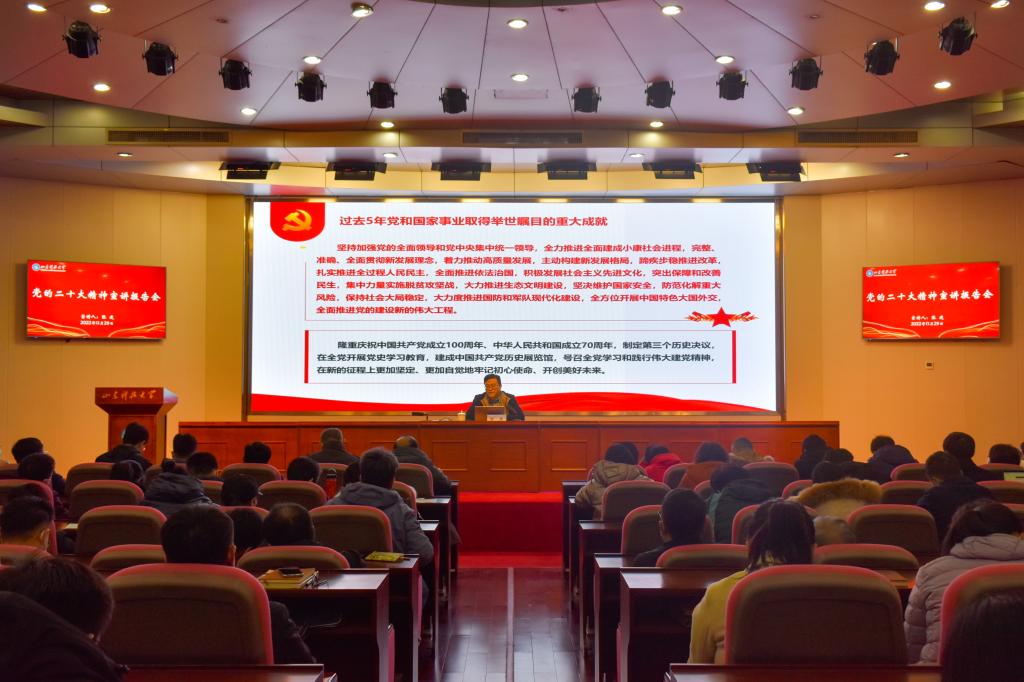 11月29日下午,副校长张建为万象城awc888师生作党的二十大精神宣讲报告。学院全体教职工、学生代表参加报告会。
