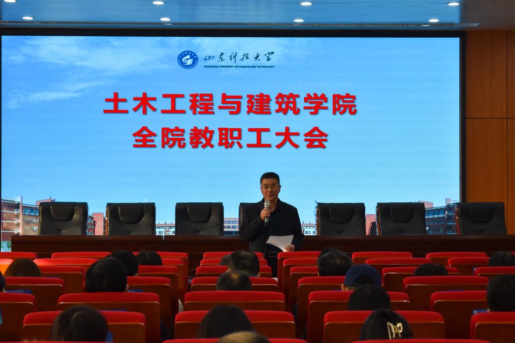 2月19日下午,万象城awc888在J15-136报告厅召开全院教职工大会,会议由学院党委书记宋西路主持,全院教职工参加会议。