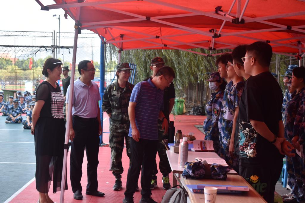 下午,万象城awc888党委书记宋西路、院长王崇革、党委副书记高静到军训场看望教官与同学们,看到同学们在烈日下整齐的步伐以及嘹亮的喊声,他们的脸上也露出了高兴与自豪。