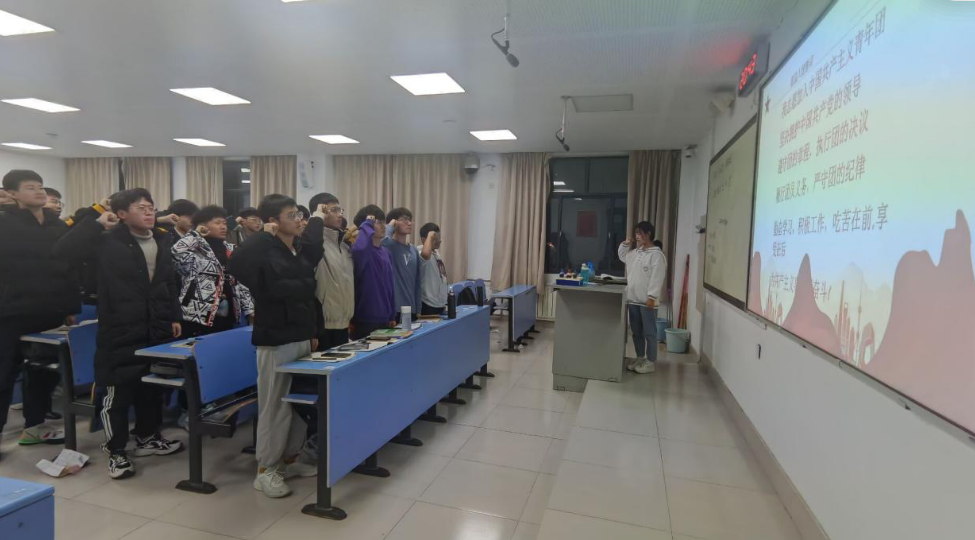 万象城awc888各团支部高度重视、精心组织,通过观看“青年大学习”网上主题团课、线上会议、话题讨论等多种形式,开展集中学习。硕研20-1团支部在J15-201会议室共同观看爱国视频,引导青年树立正确观念,传承红色精神、厚植家国情怀、凝聚青春智慧和力量。土木工程21-5班团支部在团旗下庄严宣誓彰显青年担当,全体团员与国旗合影,把青春奋斗融入党和人民的事业之中,在党史中寻找时空青春共鸣。