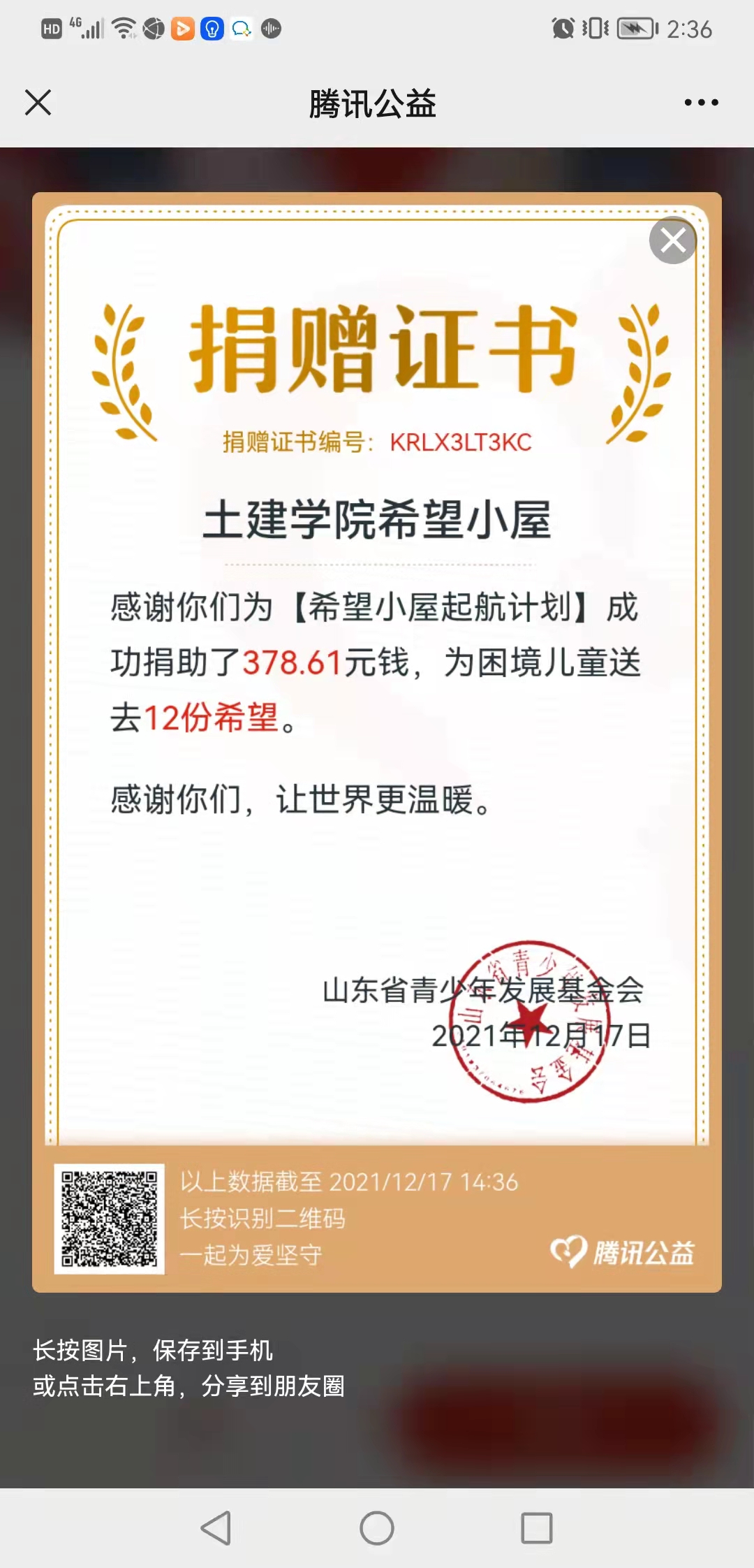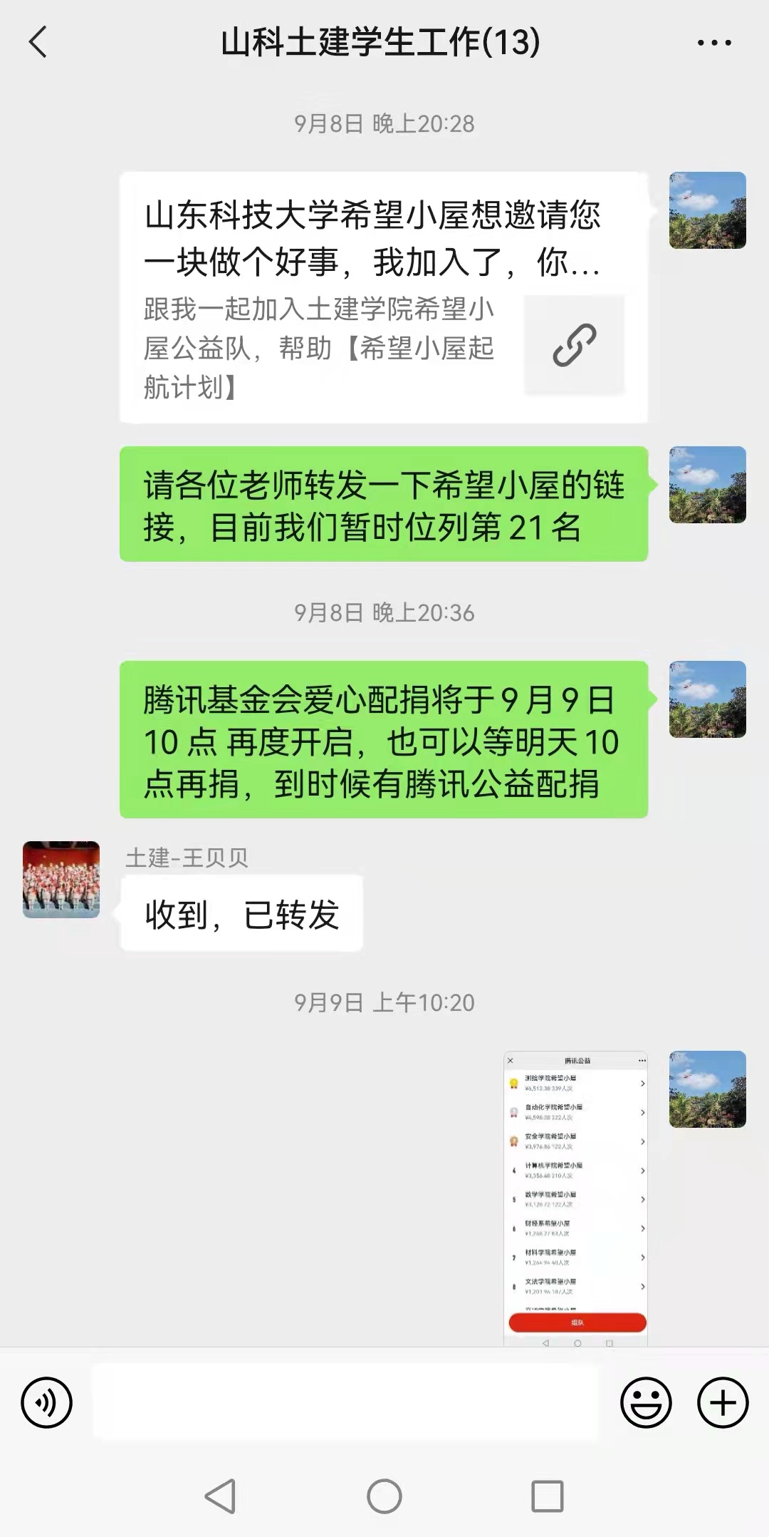 学院上下迅速行动,对师生进行深入动员,利用微信、QQ等媒介大力进行宣传,营造了“凝聚爱心、助力公益”的良好氛围。从9月9日开始,师生踊跃使用手机进行线上捐款,并转发宣传,带动身边更多的人参与活动。“送人玫瑰,手有余香”,在参与捐赠的同时,大家也深深感受到了帮助他人后收获的温暖。