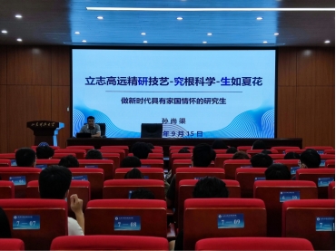 为提升研究生科研素养,夯实学术功底,助力研究生开启书“研”途生涯,9月15日下午,万象城awc888硕士生导师孙尚渠于J15-136向2022级研究生做了“立志高远精研技艺-究根科学-生夏如花”专题讲座。