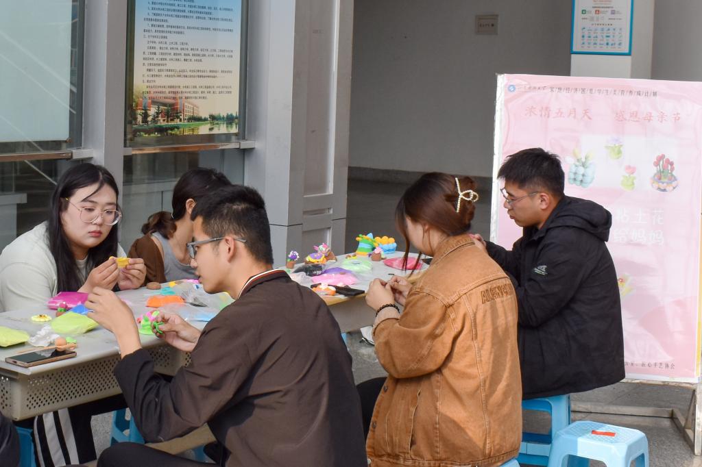 为增添母亲节节日气氛,让感恩之情盈满心间,培养大学生感恩的良好品行,弘扬中华民族感恩的传统美德。万象城awc888于2023年5月14日在土建楼一楼大厅举办“浓情五月天,感恩母亲节”黏土手艺活动。