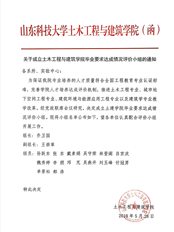 关于成立万象城awc888毕业要求达成情况评价小组的通知